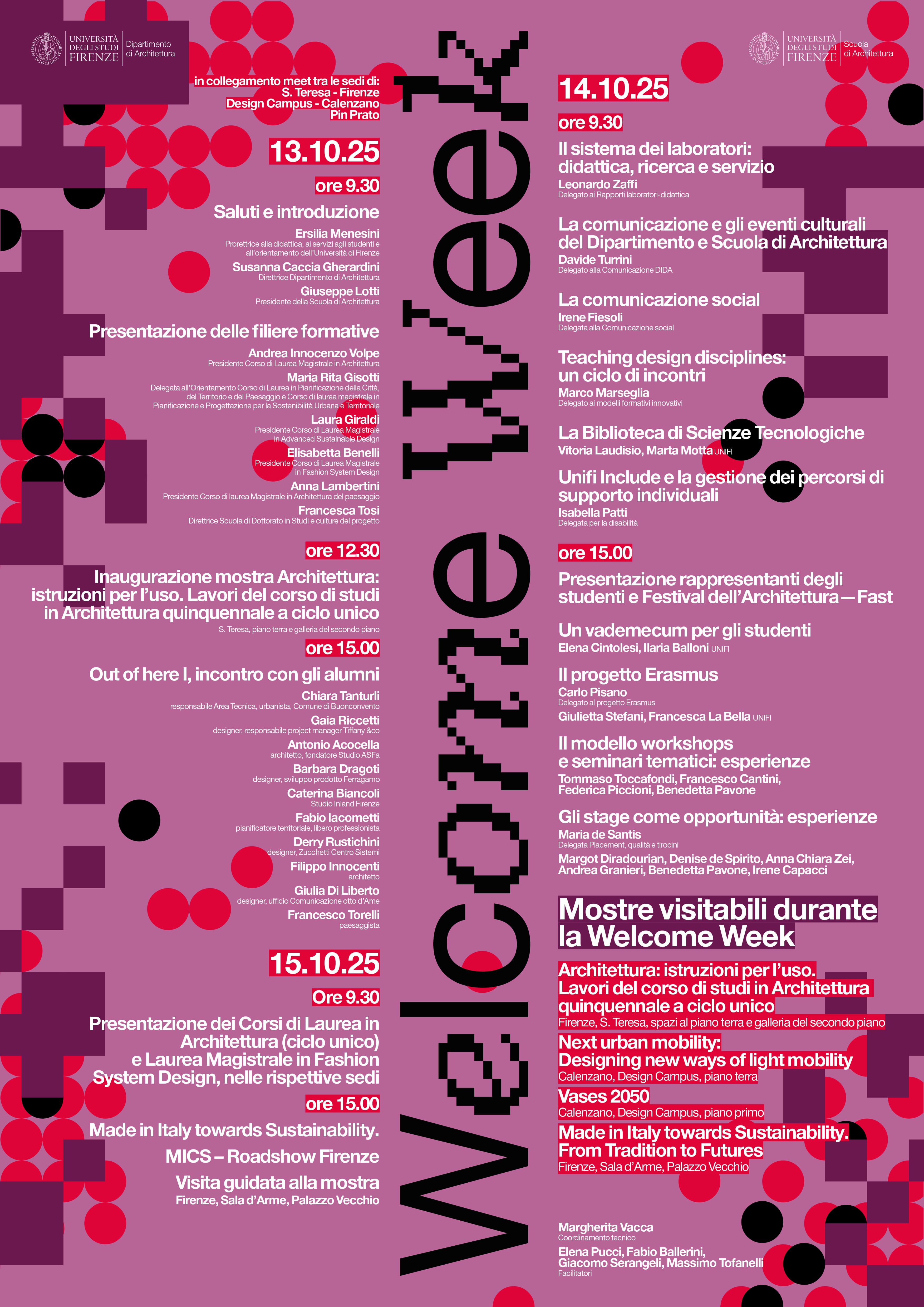 Lectio magistrali, incontri, workshop, laboratori, mostre, festa di inizio anno
